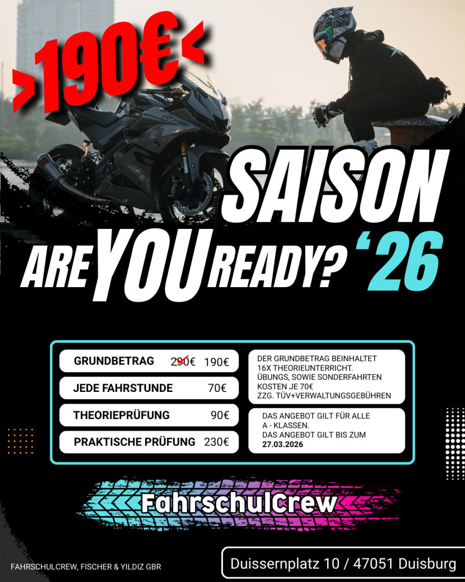 Dinge wie "Am Berg anfahren", "durch die Waschstrasse fahren", oder "in die Tiefgarage des Duisburg City Forum fahren", wird alles geübt.